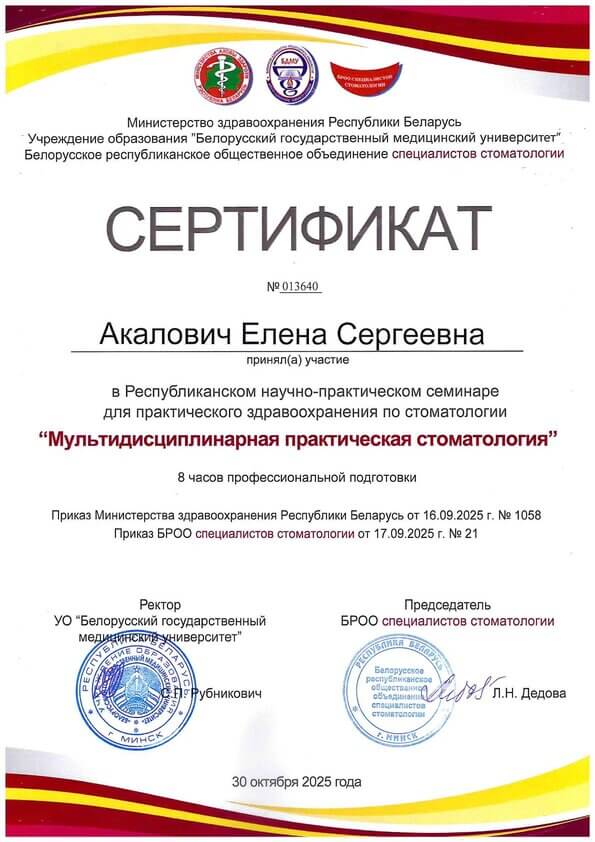 - 2019 г., «Дифференцированный выбор средств и методов профилактики и лечения кариеса зубов согласно нормативным документам», БелМАПО