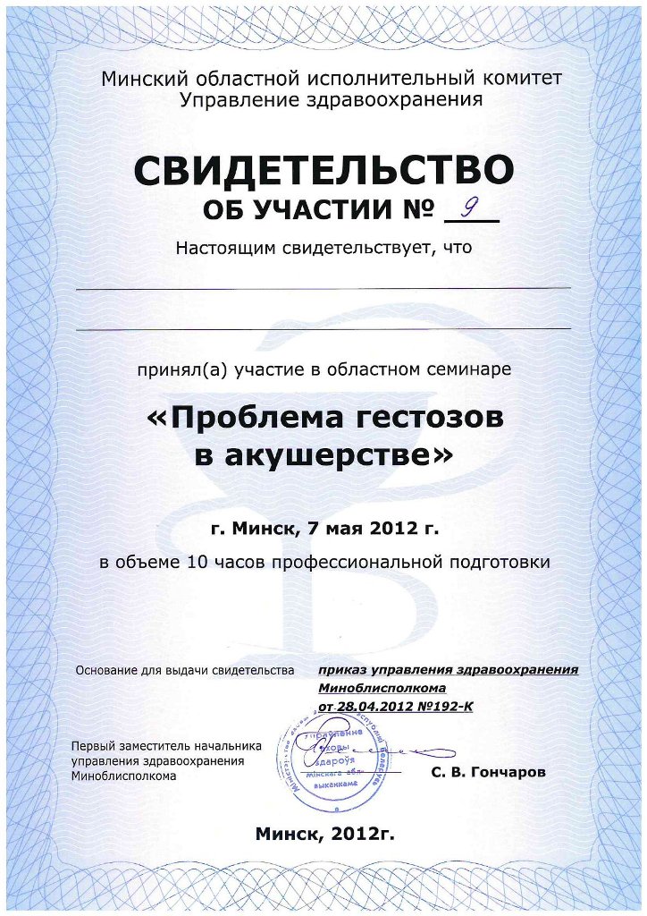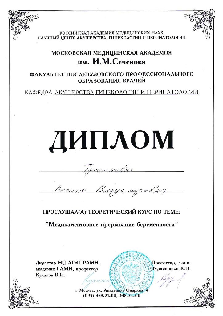 - 2012, «Современные подходы к оперативным методам лечения в гинекологии с основами ультразвуковой диагностики»