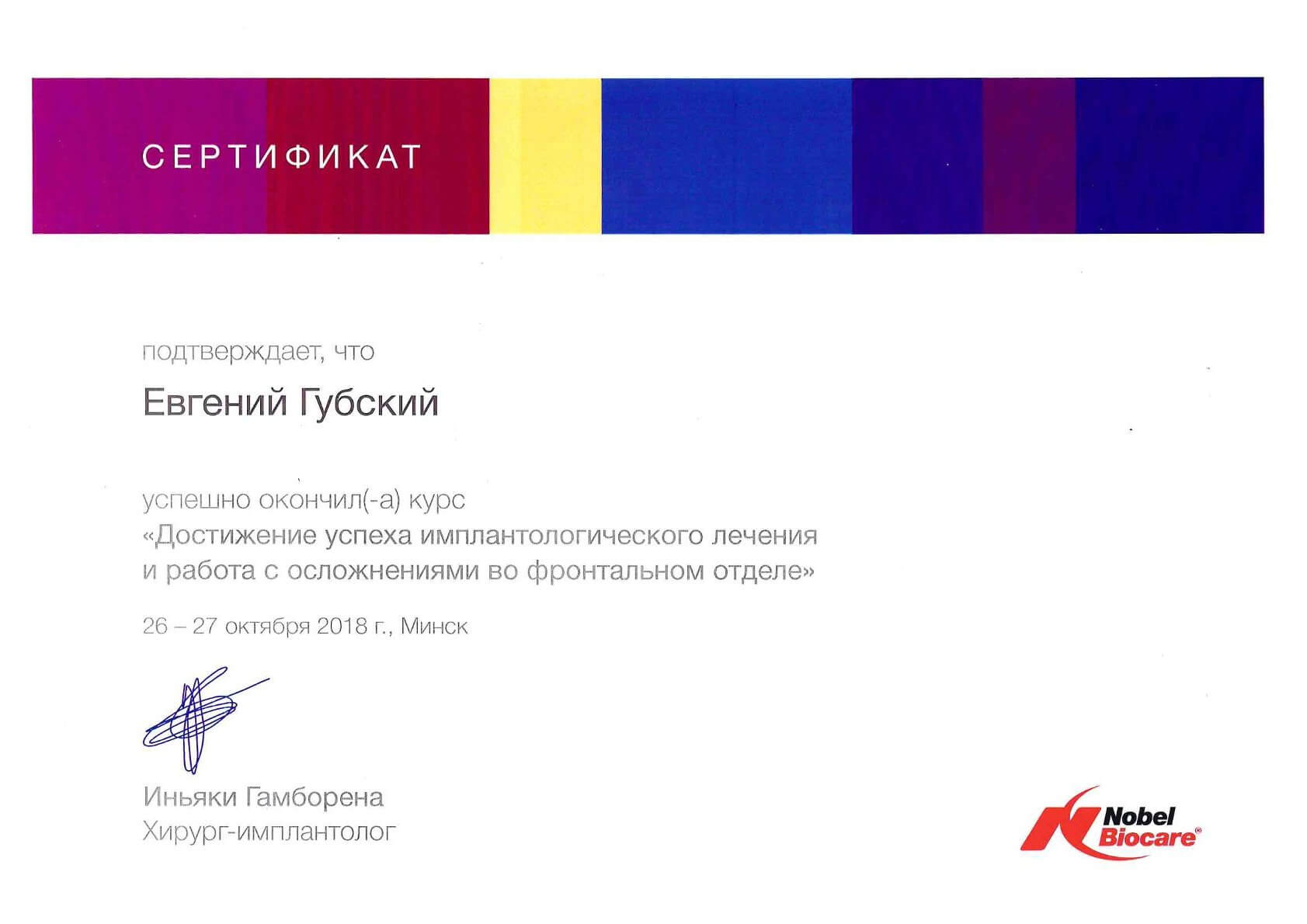 • 2018, Достижение успеха имплантологического лечения и работа с осложнениями во фронтальном отделе