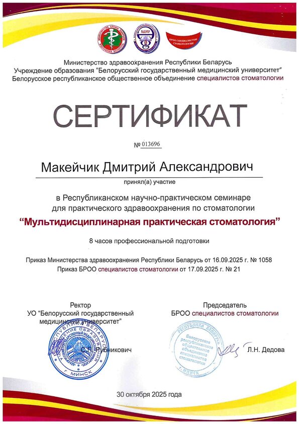 • 2020, БелМАПО «Современные методы медицинской реабилитации пациентов с дефектами зубов и зубных рядов»