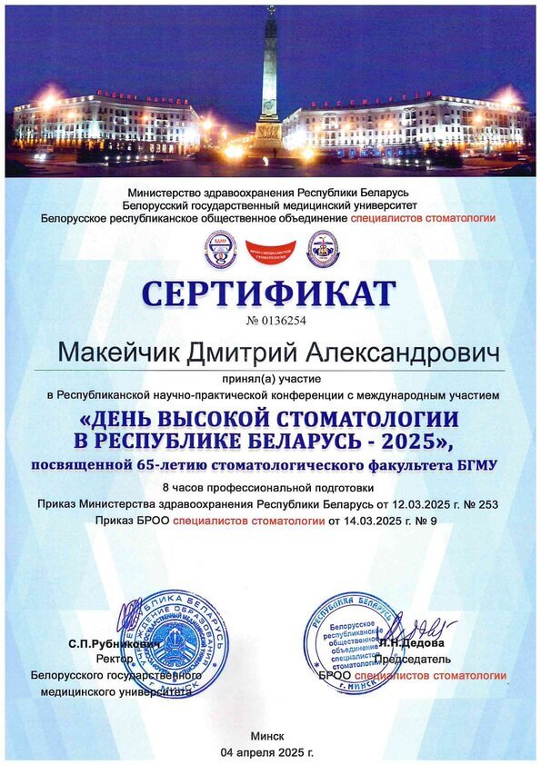 • 2020, БелМАПО «Современные методы медицинской реабилитации пациентов с дефектами зубов и зубных рядов»