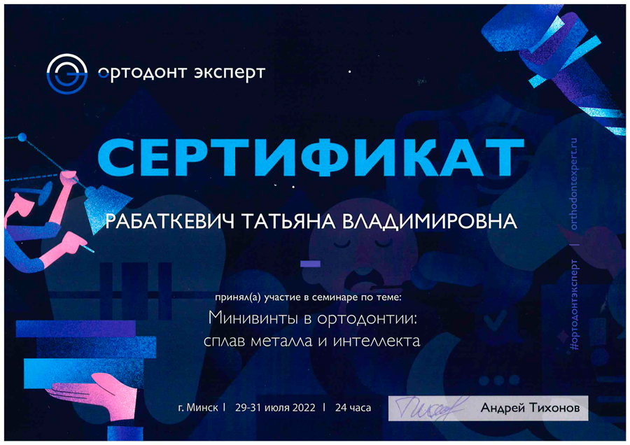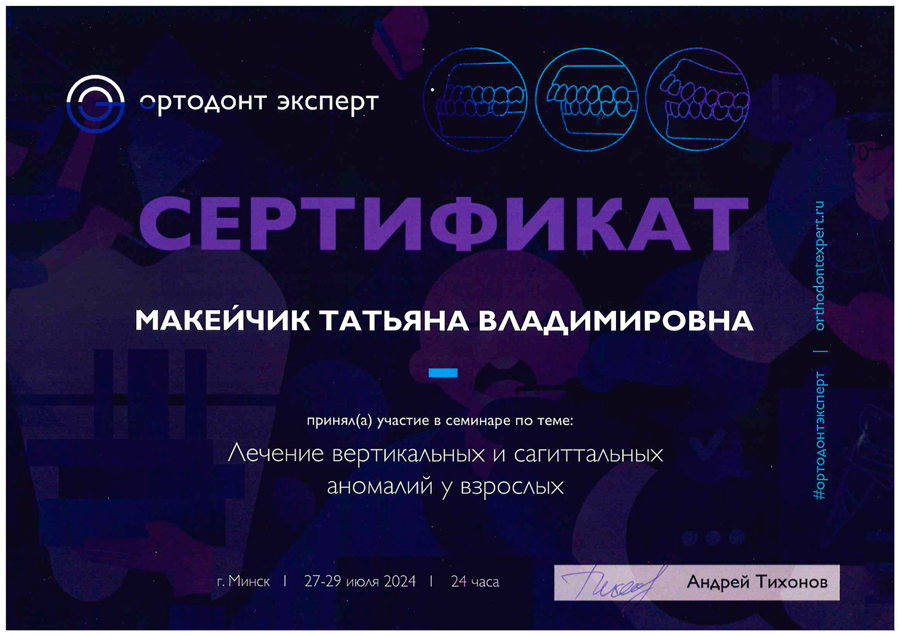 - 2024, «Лечение вертикальных и сагиттальных аномалий у взрослых» Андрей Тихонов/Минск