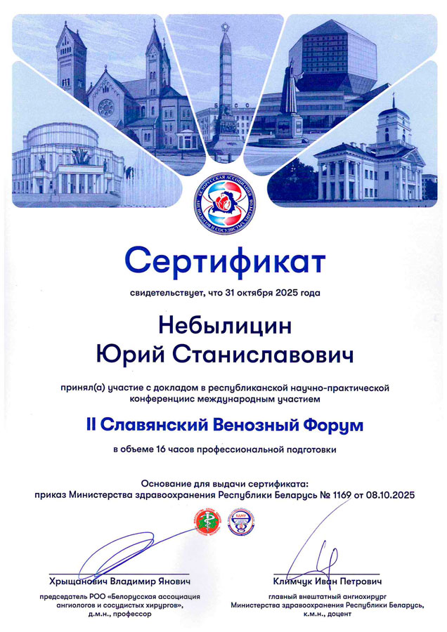 - 2025, Междисциплинарный подход в лечении хронических заболеваний вен нижних конечностей.