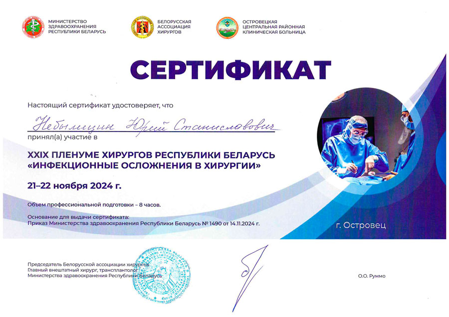 - 2024, Пленум хирургов Республики Беларусь и научно-практическая конференция «Инфекционные осложнения в хирургии»