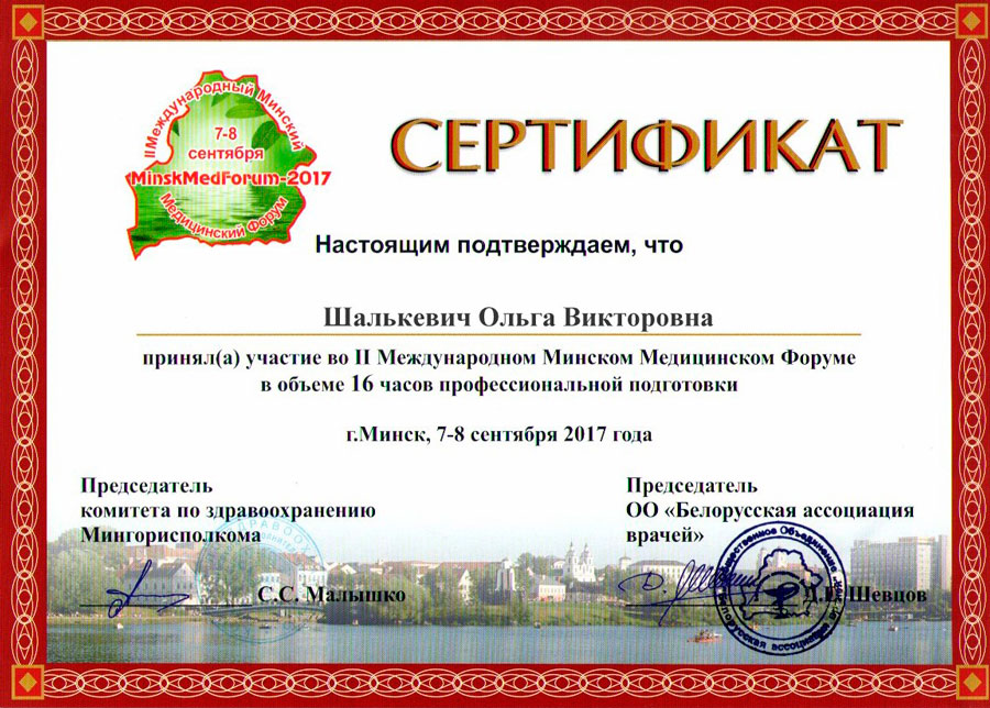 Ольга Викторовна в 1996г. окончила педиатрический факультет МГМИ. В 1999г. прошла специализацию по ультразвуковой диагностике на рабочем месте. В связи с новыми требованиями Минздрава В 2010 г. прошла переподготовку по специальности «Ультразвуковая диагностика» в ГУО «БелМАПО».