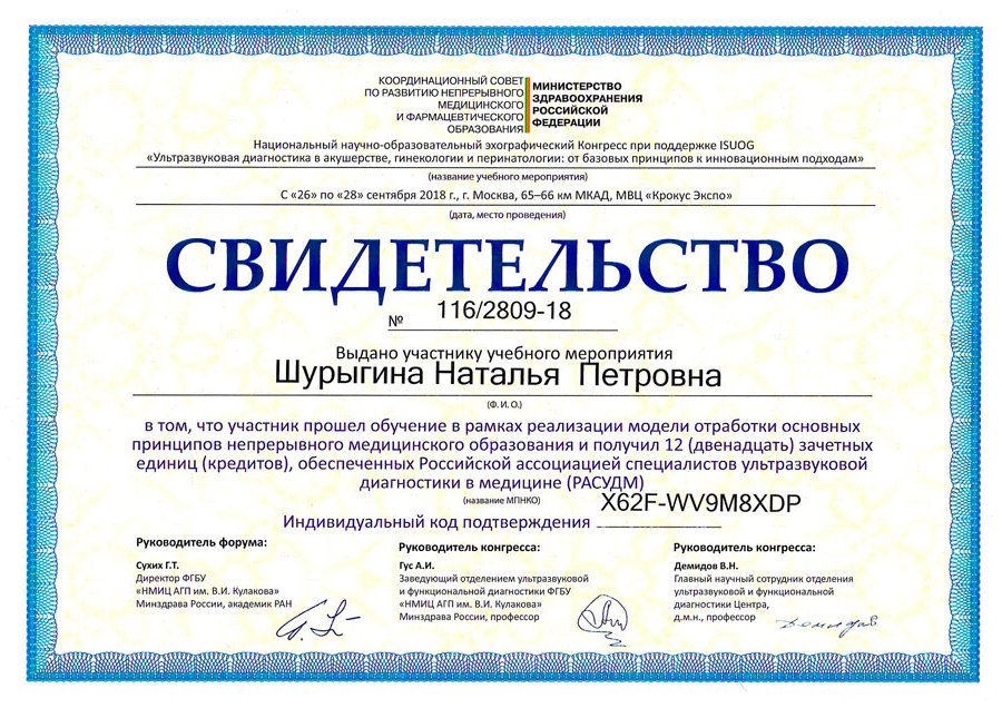 Врач ультразвуковой диагностики первой квалификационной категории