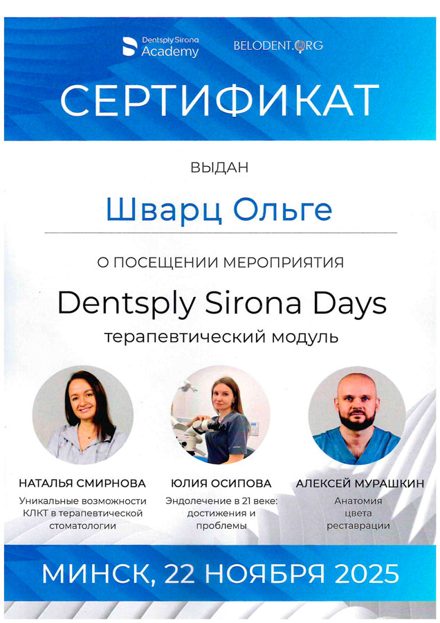 • 2025, Cтоматологический семинар «Dentsply Sirona Days»