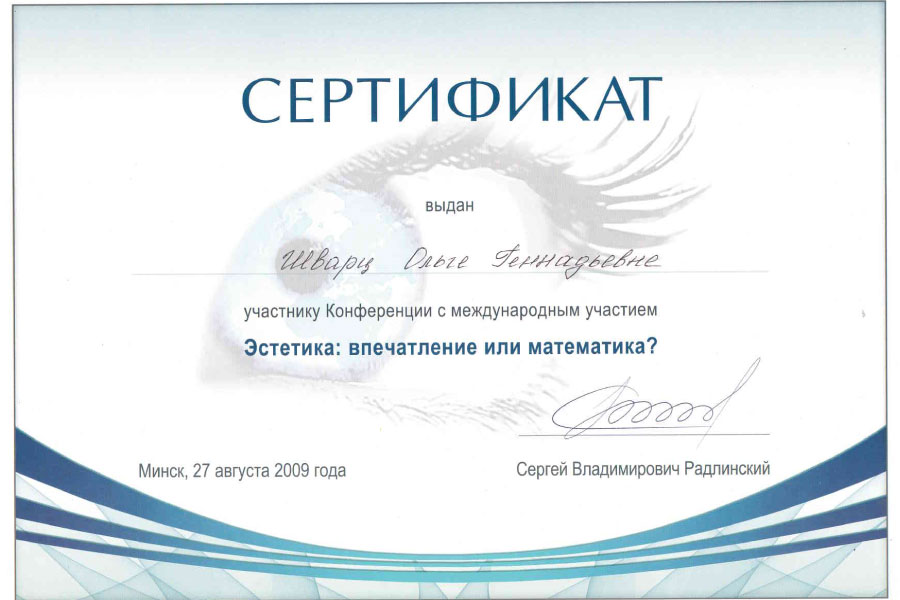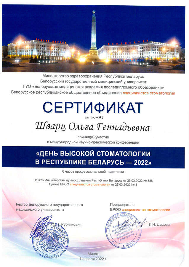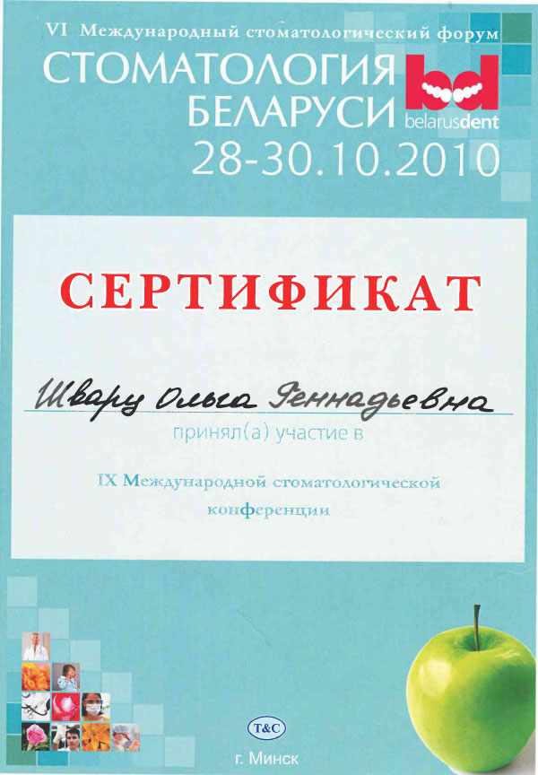 • 2007, 8–я международная научно – практическая конференция «Пути повышения качества лечения стоматологических заболеваний с использований современных материалов и технологий»