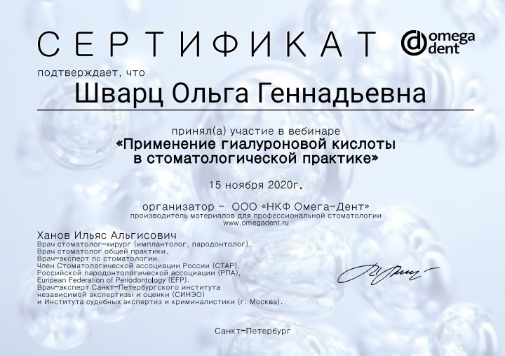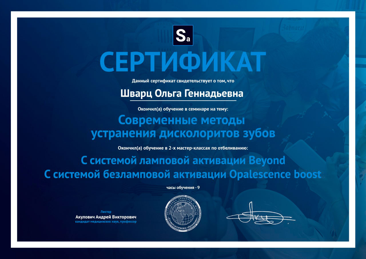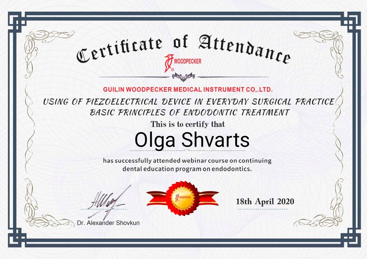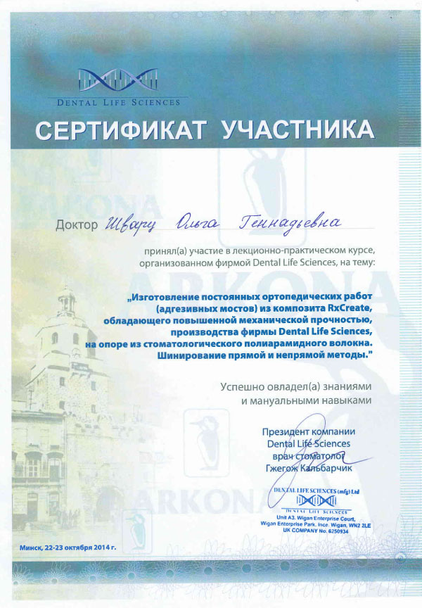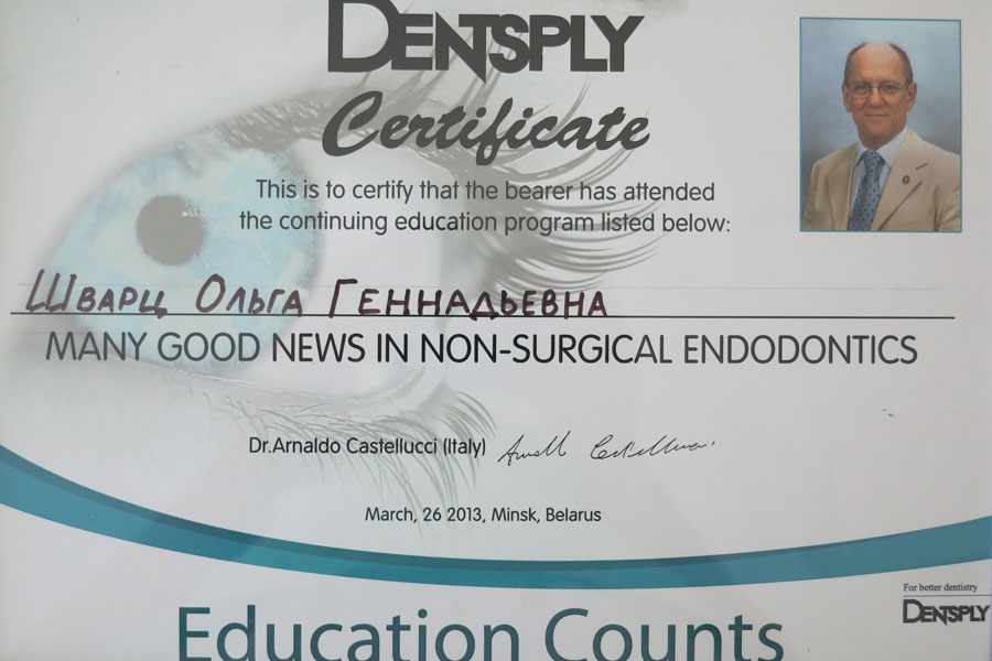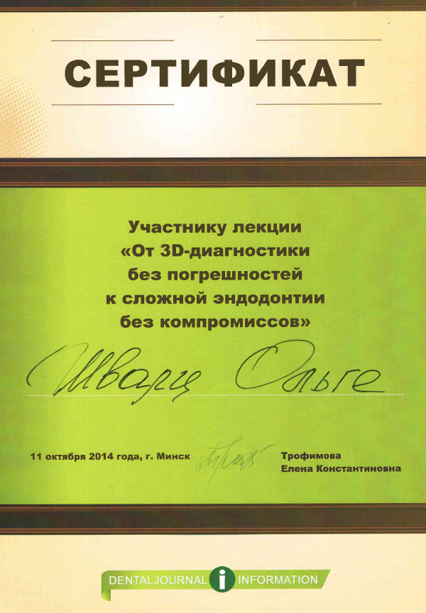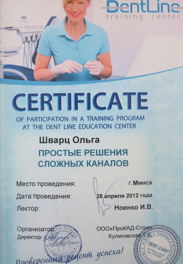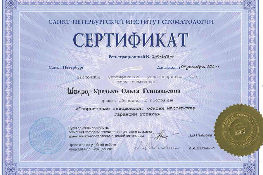 • 2004, «Реставрация зубов с использованием современных пломбировочных материалов» , «Современная эндодонтия: основы мастерства. Гарантии успеха». Институт стоматологии МЕДИ , г. Санкт – Петербург