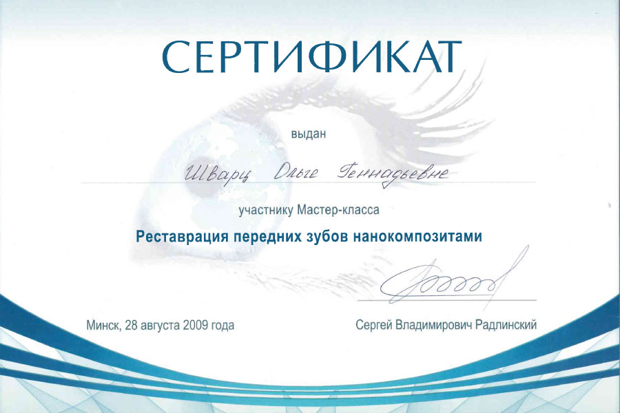• 2009, Мастер – класс «Реставрация передних зубов нанокомпозитами»