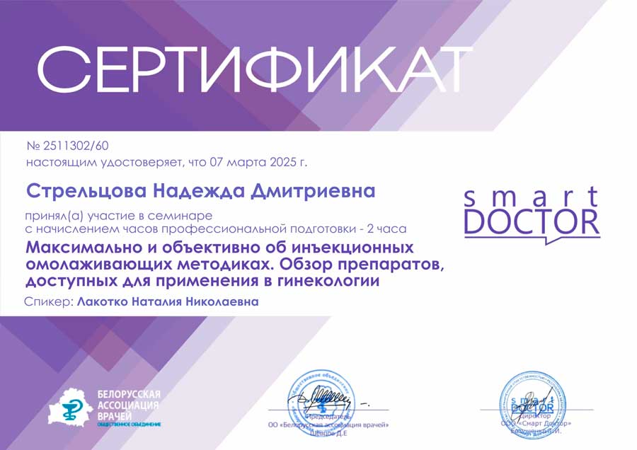 - 2010, БелМАПО, Дифференцированные подходы к диагностике и лечению гинекологической патологии с основами УЗИ и кольпоскопии