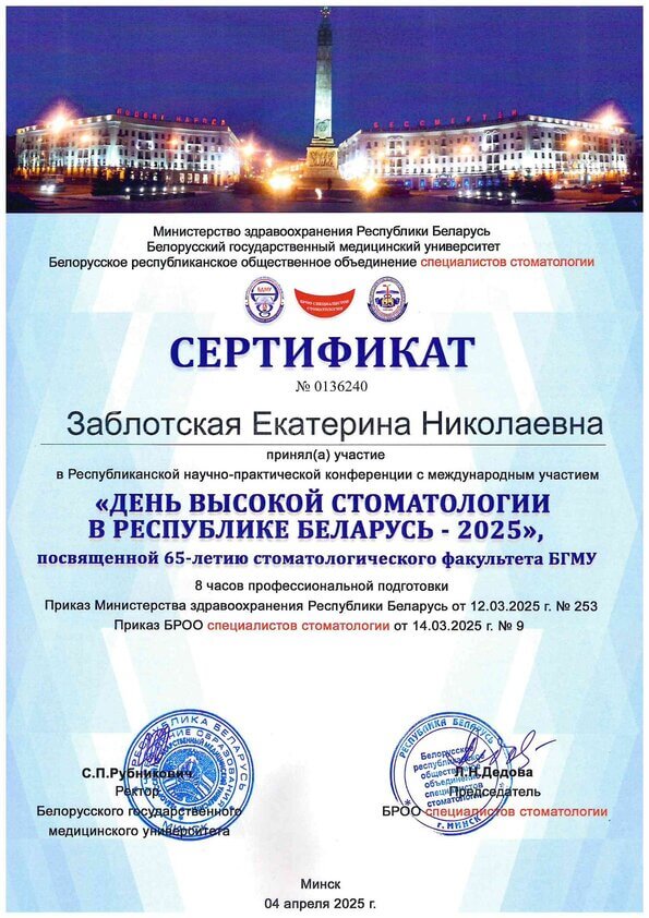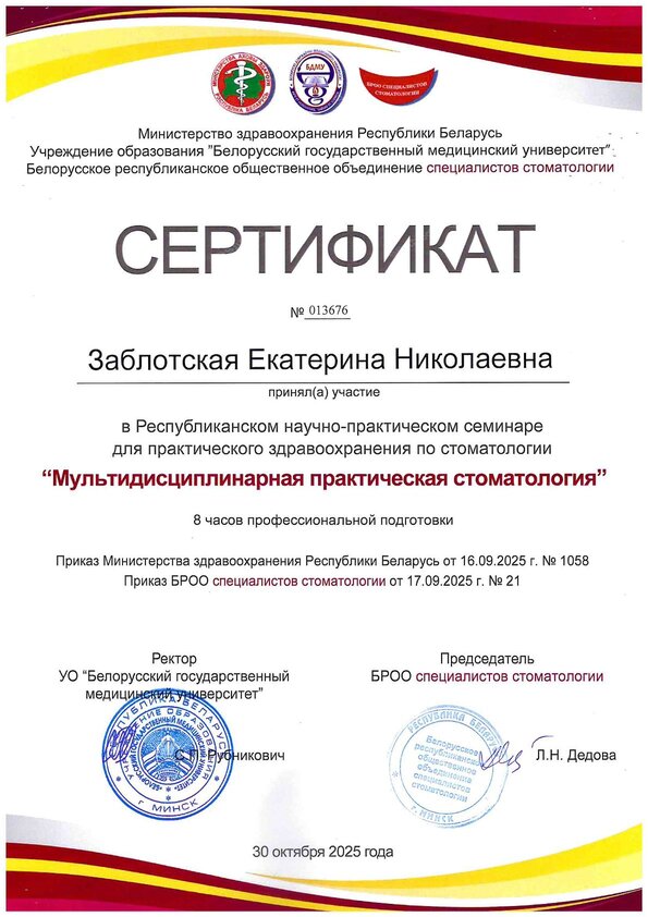 Стоматолог-терапевт высшей квалификационной категории
