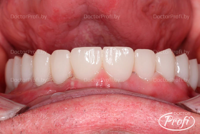 На седьмые сутки пациенту были фиксированы временные несъёмные конструкции на верхнюю и нижнюю челюсть.