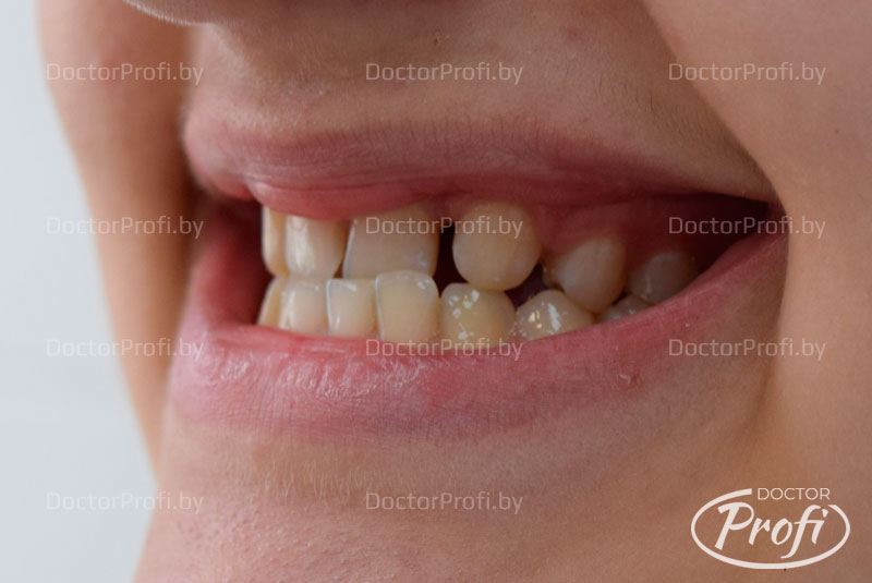 В результате проведенного лечения пациент обрел красивую улыбку, правильный прикус, ровные и здоровые зубы.