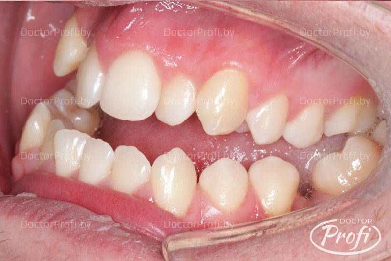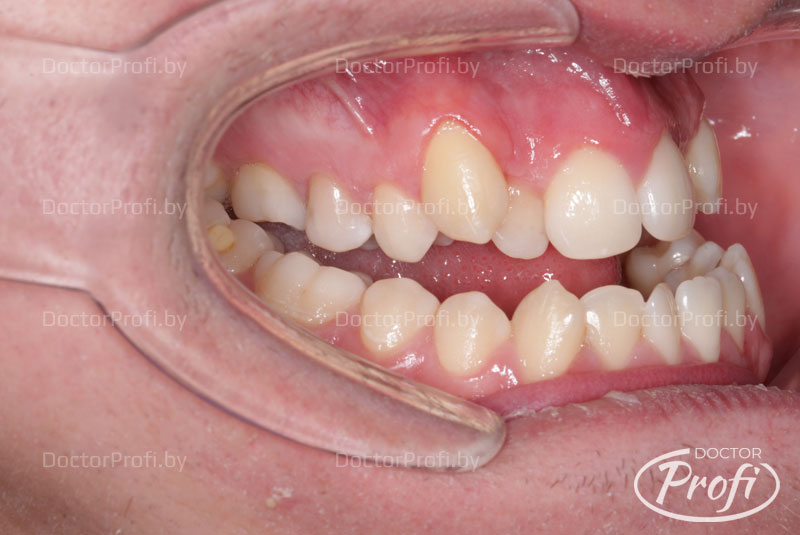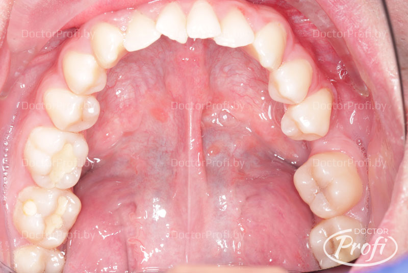В результате проведенного лечения пациент обрел красивую улыбку, правильный прикус, ровные и здоровые зубы.