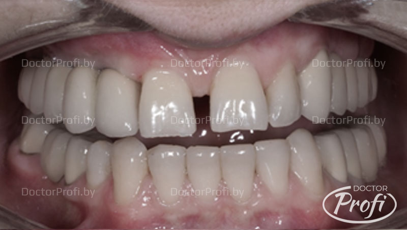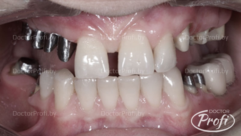 Пациент обратился в клинику «Доктор ПРОФИ» для комплексной реабилитации с желанием восстановить отсутствующие зубы, закрыть щель между центральными резцами и улучшить улыбку.